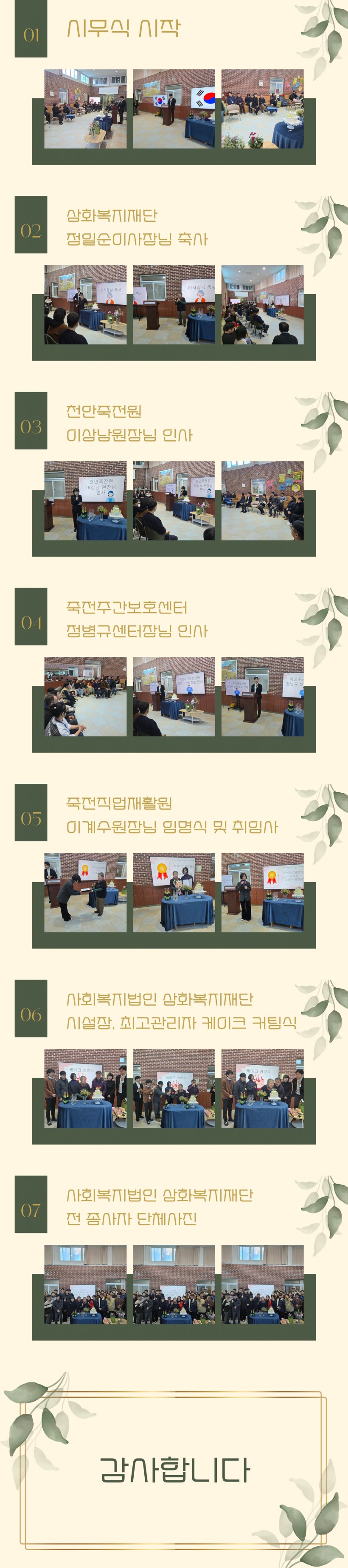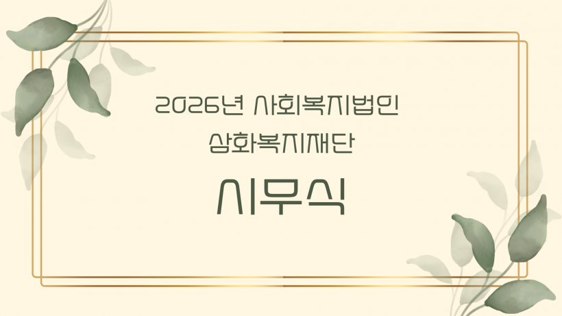 2026년 사회복지법인 삼화복지재단 시무식 페이지 정보 작성자 운영자 작성일26-01-02 17:56 조회18회 댓글0건 관련링크 목록 본문 2026년 사회복지법인 삼화복지재단 시무식 진행하였습니다.2025년 잘 마무리 진행하였고 새롭게 2026년 시작하였습니다.2025년에 사랑과 나눔, 후원, 봉사를 진행해주신 모든 분들께 감사드리며 2026년에도 잘 부탁드립니다.새해 복 많이 받으세요! 댓글목록 등록된 댓글이 없습니다. 목록